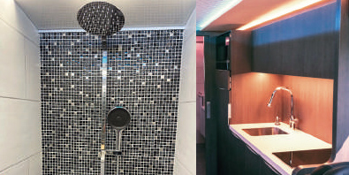 L’autocar est par ailleurs équipé d’une salle de bain avec équipements Hansgrohe,